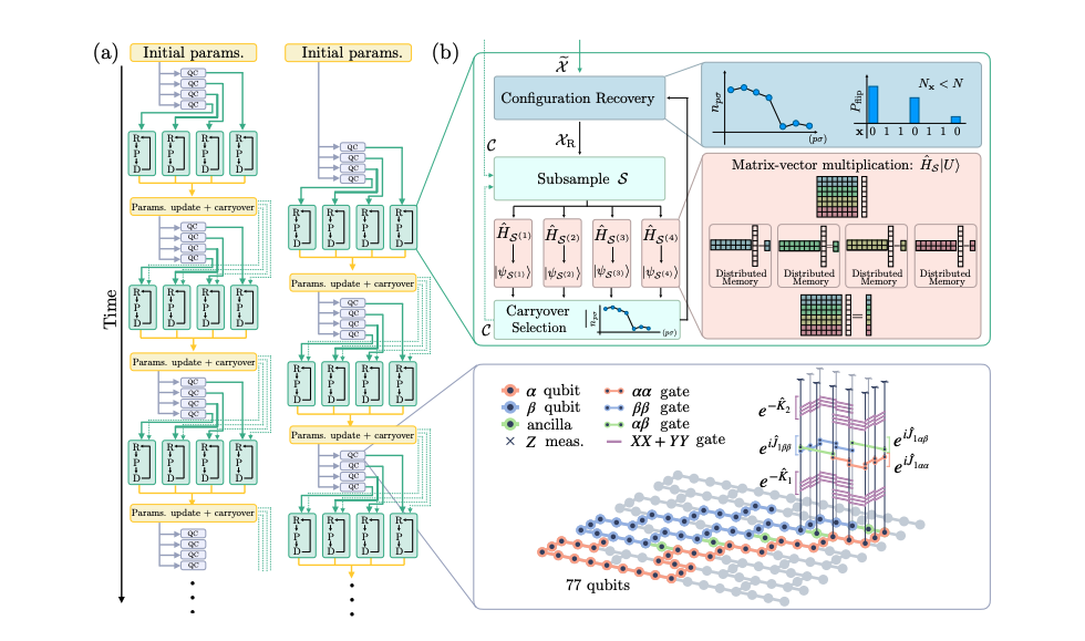 Understanding how quantum and classical computers can work together is crucial for unlocking the full potential of quantum computation, and recent experiments exploring this synergy have been limited in scope. Tomonori Shirakawa from RIKEN’s Center for Computational Science, Javier Robledo-Moreno and Toshinari Itoko from IBM Quantum, along with Vinay Tripathi, Kento Ueda, and Yukio Kawashima, now demonstrate a significant advance by performing the largest ever computation of electronic structure using a combined quantum and classical approach. The team designed a closed-loop workflow connecting an IBM Heron quantum processor with the entire Fugaku supercomputer, comprising 152,064 nodes, to model complex electronic structures beyond the capabilities of traditional methods. This achievement not only pushes the boundaries of quantum-classical integration, but also showcases unprecedented orchestration of computational resources at a scale currently unmatched by any existing classical supercomputer, paving the way for more accurate and efficient simulations of complex materials and molecules.
